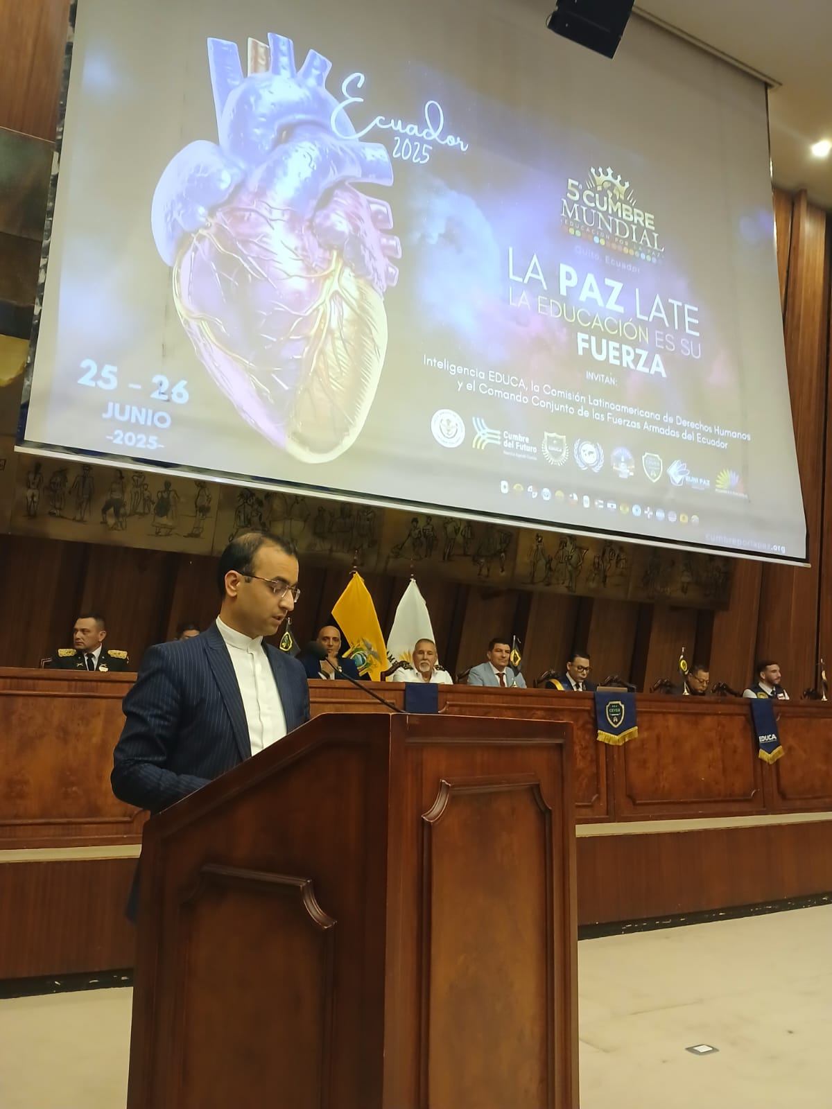 La Embajada de la República Islámica de Irán, participó en la 5ta Cumbre Mundial de Educación por la Paz, patrocinado por la Comisión Latinoamericana de Derechos Humanos "Cónsules de Paz Mundial" y con la asistencia de delegados de 40 países, desarrollado el 25 de junio en la sede de la Asamblea Nacional de Ecuador.